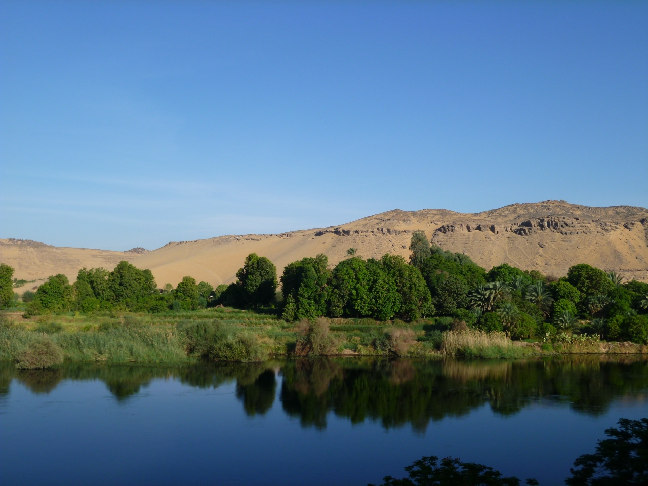 ナイル川と対岸の砂漠のコントラストがとてもきれいだった。 -