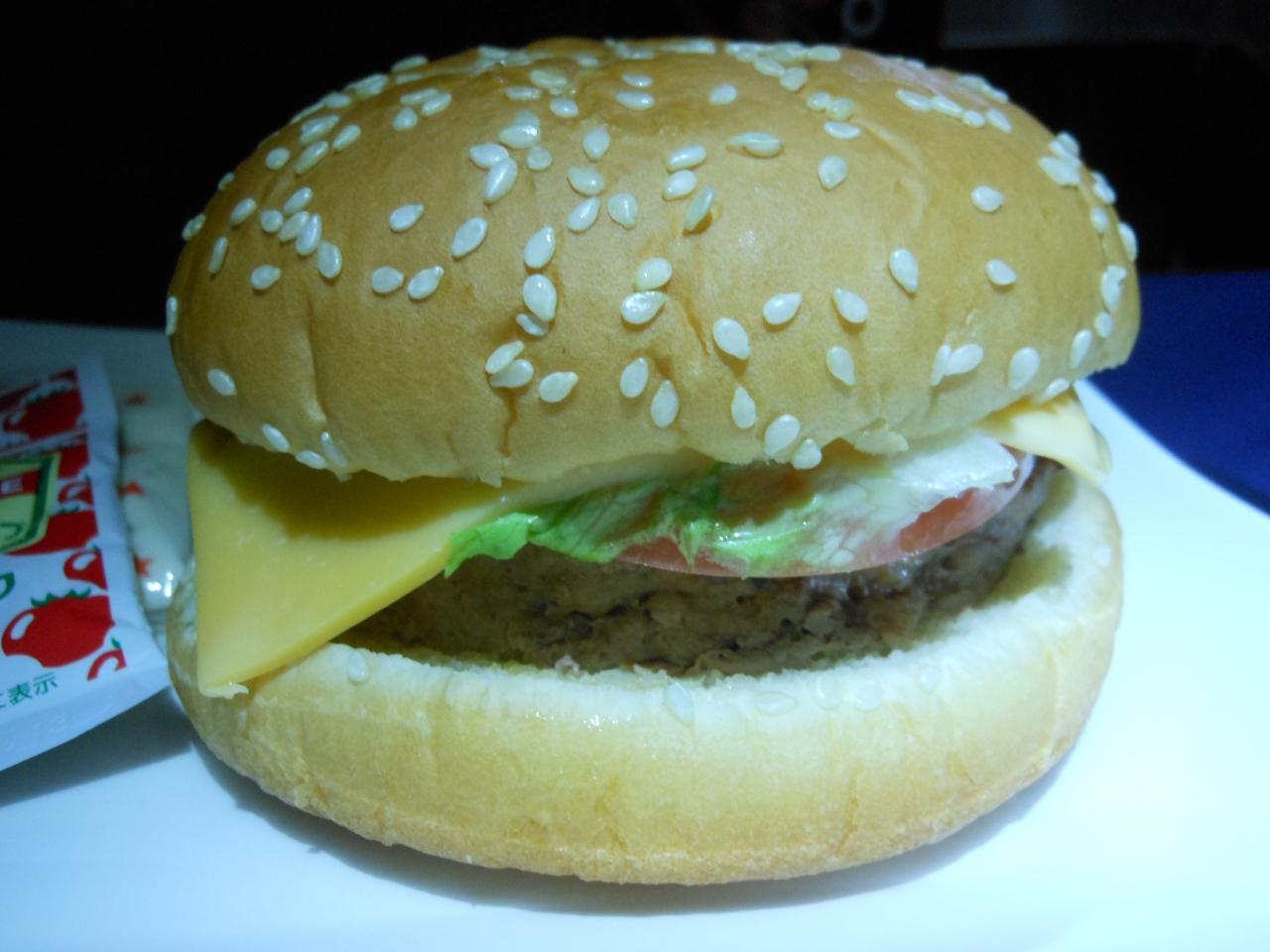 離陸してすぐは軽食をオーダーできます。職場から直接来たので先日も美味しかったハンバーガーをいただこうかな。