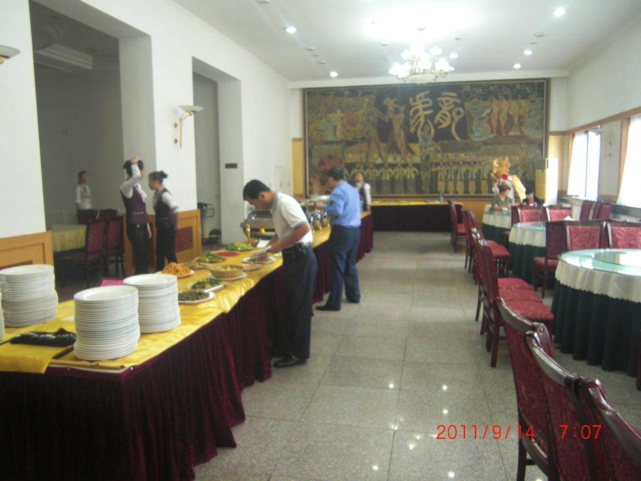 ホテルの部昨日の夕食を食べたホテル向かいの朝鮮族の食堂