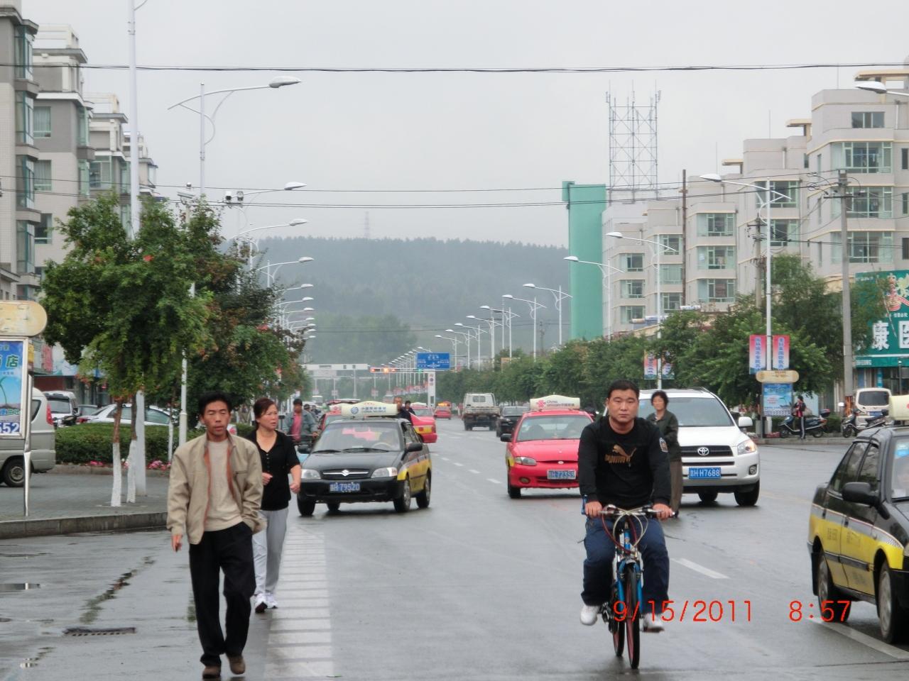客運站の寄存(Jìcún 手荷物預かり所)に3元で預け、またそこのオバちゃんに道と時間を聞いたら「ゆっくり歩いても20分で行ける」とのことだった。さっき退房の時にフロント姑娘にも聞いたが、どうも遠くに見えてそんな簡単に行けると思わなかった。しかし実際その方向に近づけばホンマすぐそこだった。