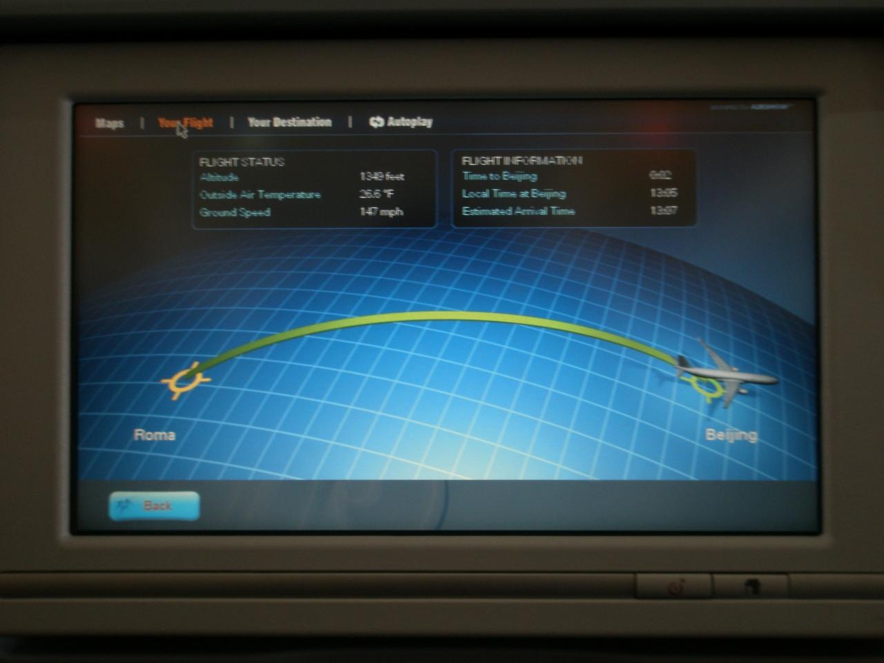 北京からローマにきた時と機体が違って、モニターも少し違います