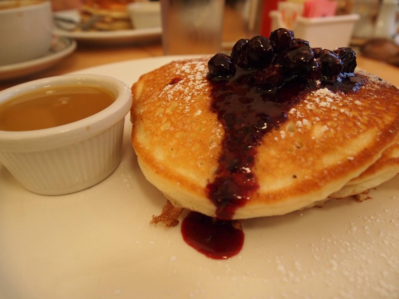 これが大人気のパンケーキ(ウィズ・ワイルド・メイン・ブルーベリー&ウォーム・メープルバター)です。$13