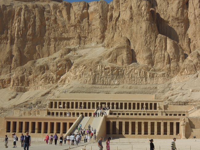 崖を利用した3階建て葬祭殿。秀麗な姿からとりわけ神聖なものとして称えられた。2階にはハトホル女神の礼拝堂、南方の国プントとの交易図、ハトシェプストの誕生伝説のレリーフがある。側近の建築家センムトが全体設計をした。