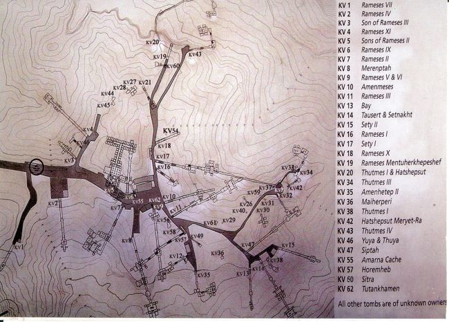 王家の谷はピラミッドの形をしたエルクルン山のふもとにあり、入口が狭く盗掘から守りやすいのでファラオの墓所に選ばれた。全部で63の墓が発見されている。トトメス1世以降の新王国時代の歴代ファラオが埋葬されている。墓にはすべて番号が付けられていて名前が分からない墓は番号のみ。