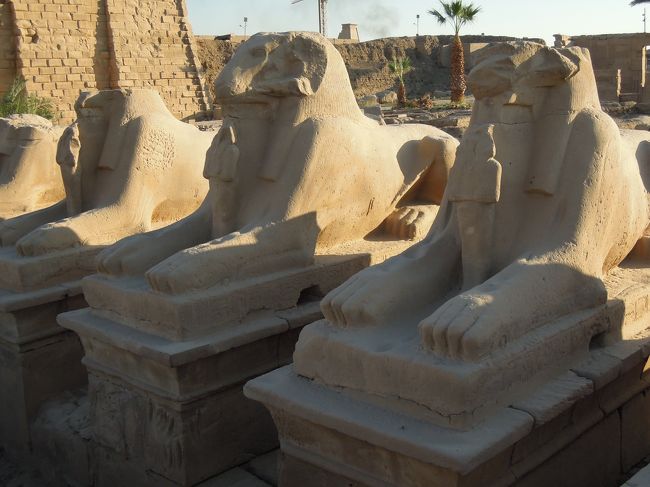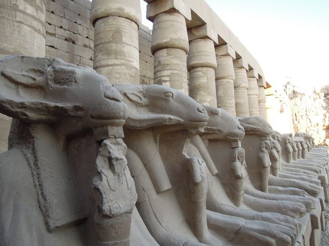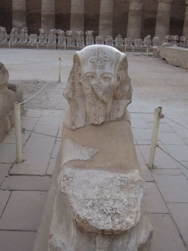 スフィンクスの参道、牡羊の頭のスフィンクス(元々は第1中庭にあったものを塔門前に運んだ)