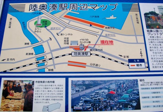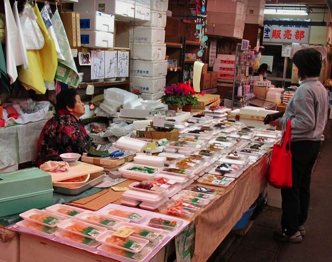 「豊富で新鮮な海の幸」が自慢の陸奥湊駅前朝市は、出店者や集まる地元民の素朴で人情味溢れる人柄もまた“名物”となっています。その港町らしい元気な姿は「イサバのカッチャ」というマスコットキャラクターとなり市内外で親しまれています。観光で訪れた方々の多くが市場通りの「懐かしい町並みの風情」にも感銘を受けています。美味しい食べ物、雰囲気、ふれあい……全てが詰まった朝市が陸奥湊駅前通り朝市です。(下記より引用)