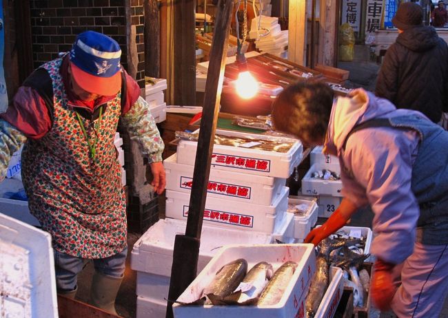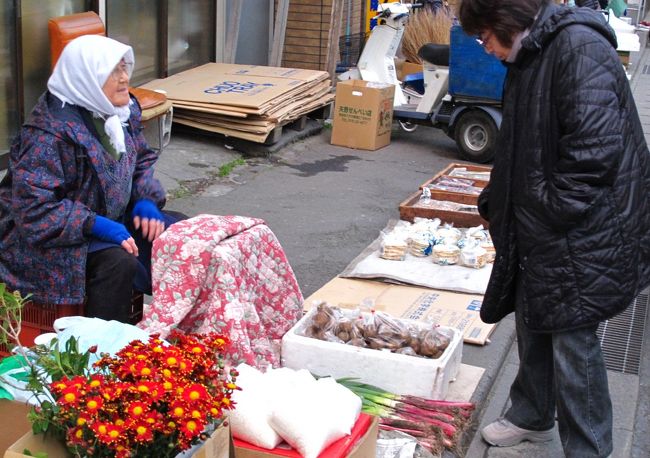 昭和28年に開設され、現在も八戸市営魚菜小売市場を中心に陸奥湊駅北口側の通りに小売店・卸店・資材店など多くの店が並ぶ陸奥湊駅前朝市。各所でたくさんの朝市が開催される八戸市内で最も古い朝市です。最盛期の昭和30〜50年代には、まさに「八戸近隣の台所」として多くの利用客をはじめ、イサバのカッチャやガンガラ部隊(ブリキ製の魚容器を担いだ行商人)などが近隣各所から集まり港町ならではの活気と賑わいに満ちていました。