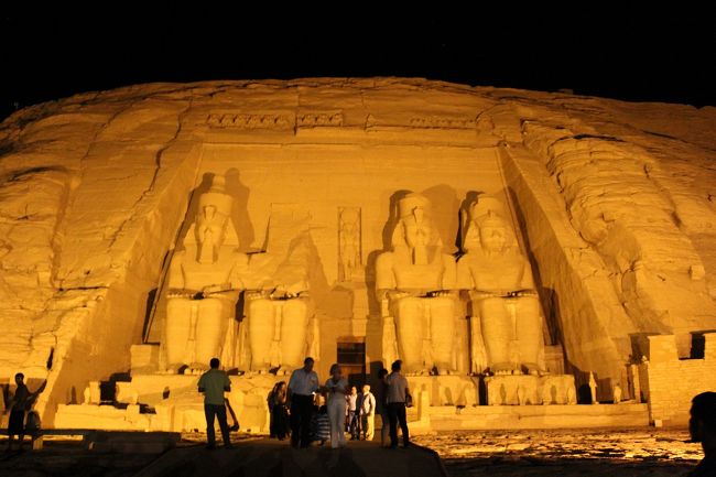 ピラミッドに次ぐ見もののアブシンベル神殿は合計三回見ました。昼・夜・朝いずれも趣が異なり良かったです。