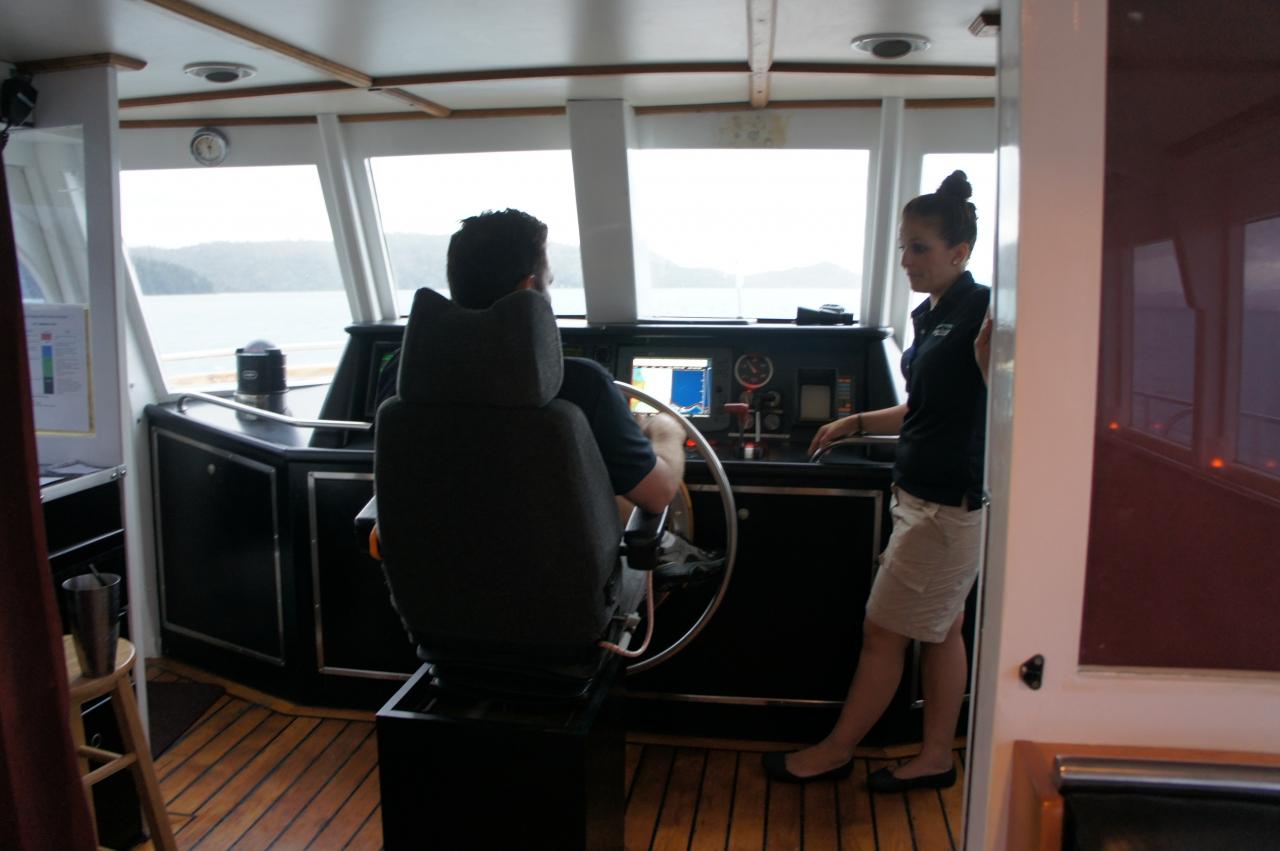 船に乗り込み、説明中です。 -