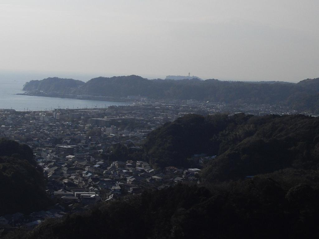衣張山(121m)から稲村ケ崎方向を望む、遠く江の島。