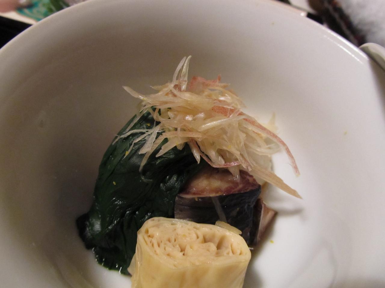 海老芋、法連草、湯葉、茗荷、柚子 -