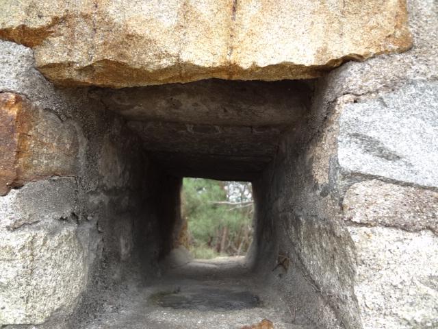 試しに覗くと、やや下方に斜めに作られているので、丘を昇ってくる敵を自然と狙えるようになっています。 -