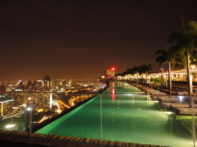 > マリーナベイサンズのプール、やっぱり夜は寒いですよね!
