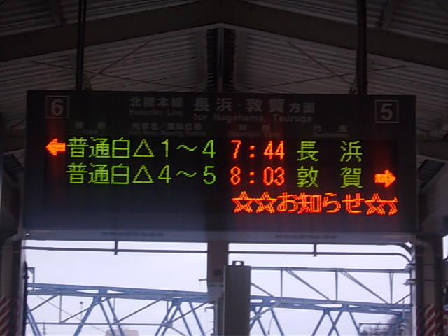 2011〜2012年冬の青春18きっぷ旅行は、2回分を北海道&関西、1回分を四国→名古屋、そして1回分は父に譲渡、という形で2011年内に4回使用しましたが、あと一回残っていました。そこで新年最初の18きっぷ旅として、最近行っていなかった石川県・富山県を目指してみることにしました。ただ、実家の名古屋から普通列車のみで日帰りするには結構ハードな行程です。従って滋賀県・石川県域は殆ど列車内からの様子を記すことになります。因みに滋賀県内での乗り換え地は、米原と長浜です。米原での滞在は約10分、長浜での滞在は約20分です。