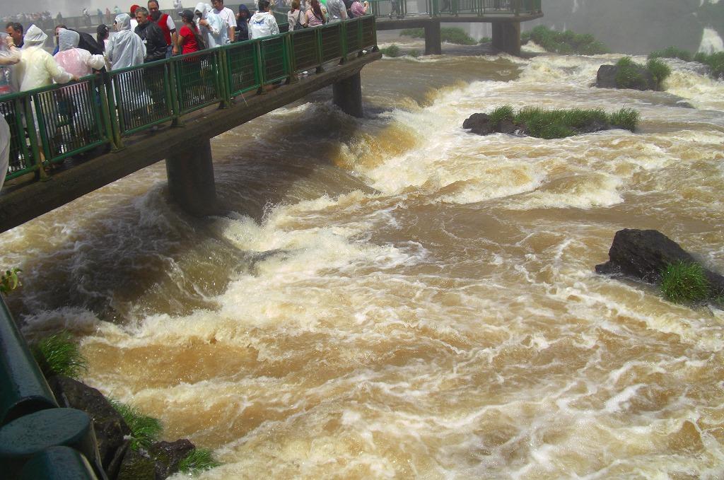 この遊歩道は濁流の上に橋脚がたてられていて、