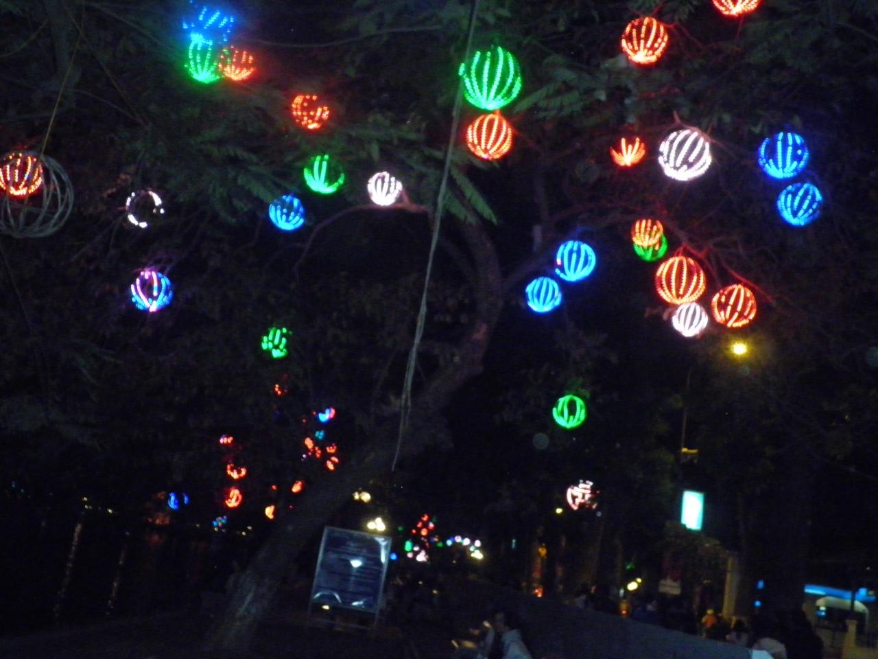 ホアンキエム湖の夜のライトアップ。
