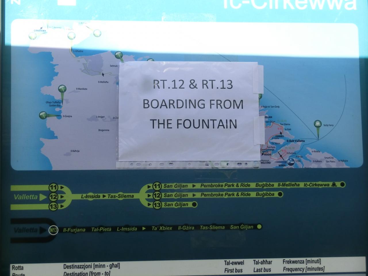 バスでバレッタへ戻る。バスは30分に1本。