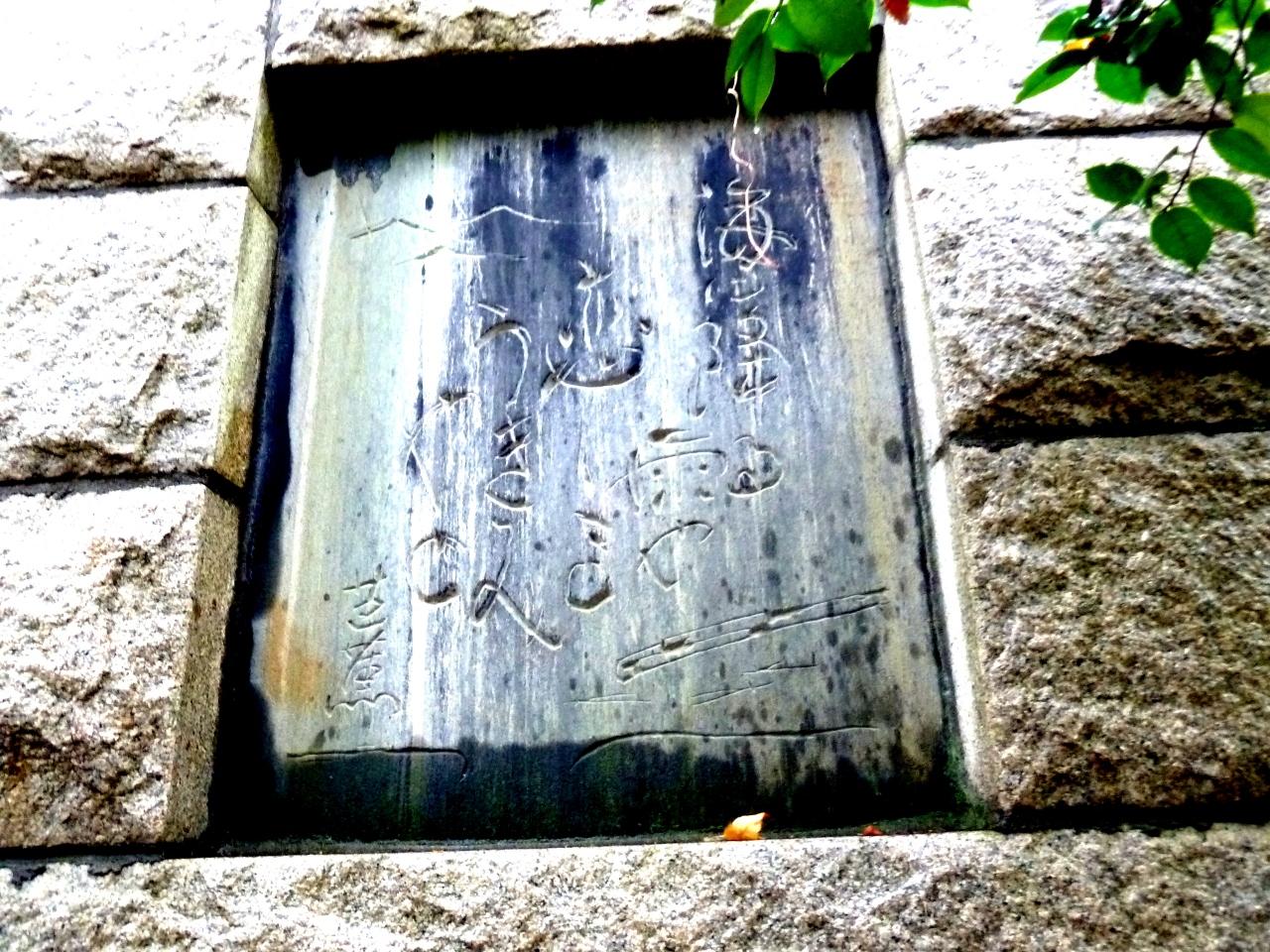 東面に芭蕉の同句の下に、芭蕉と曾良の旅姿の像が刻まれている銅版嵌め込まれている。