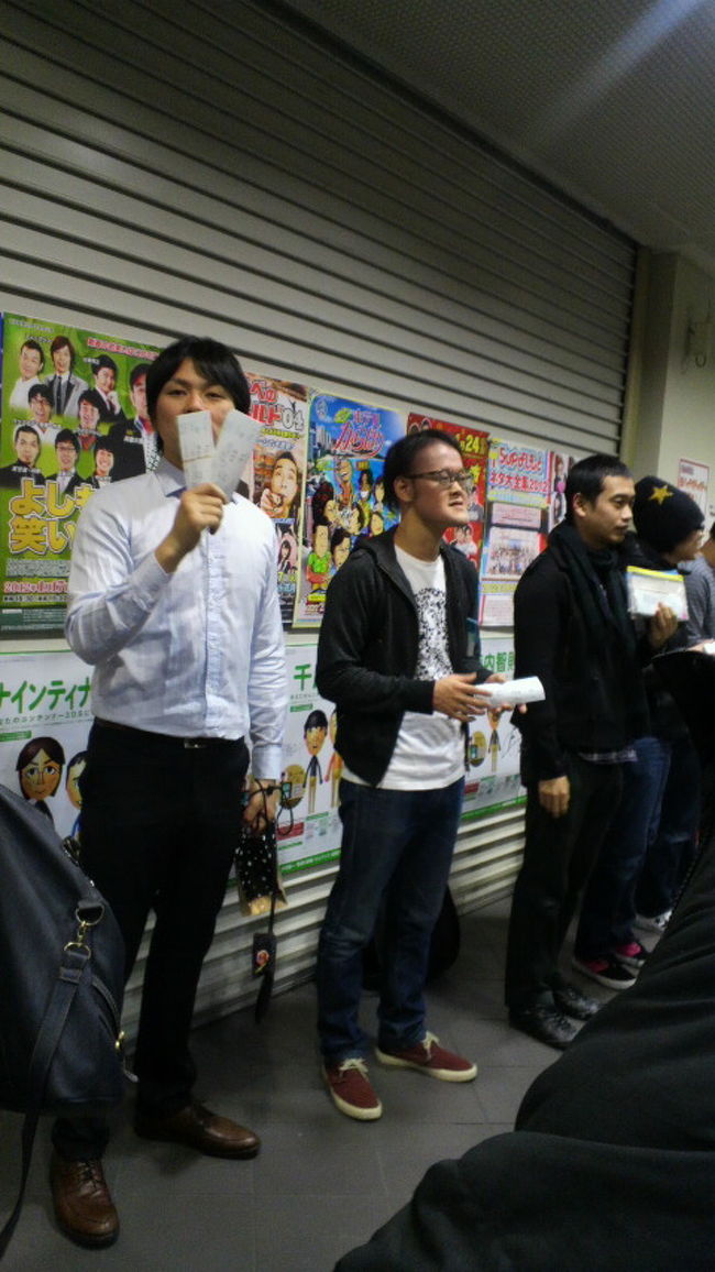 5UPよしもと。ジャルジャル かまいたち バイク川崎バイク 天竺鼠 銀シャリ アインシュタインなどでした。前売りで買っておきましたが、指定席ではなく整理券で番号を呼ばれて順番に入り好きな席に着きます。チケットと引き換えにコインを渡されて自動販売機でオロナミンCに交換できます。(自動販売器にはオロナミンCしかない)
