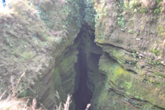 この後、すぐ近くのデビーズフォール(Devi‘s Fall)を見学した。滝の高さは48m、長さは、500mだそうである。今は乾季のため、滝の水量は少ないが、雨季には、ヒマラヤ山脈から多量の水が流れ落ちる様子が写真に写っていた。
