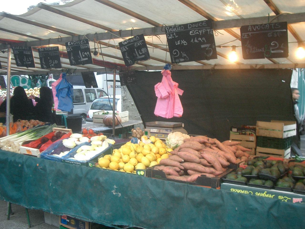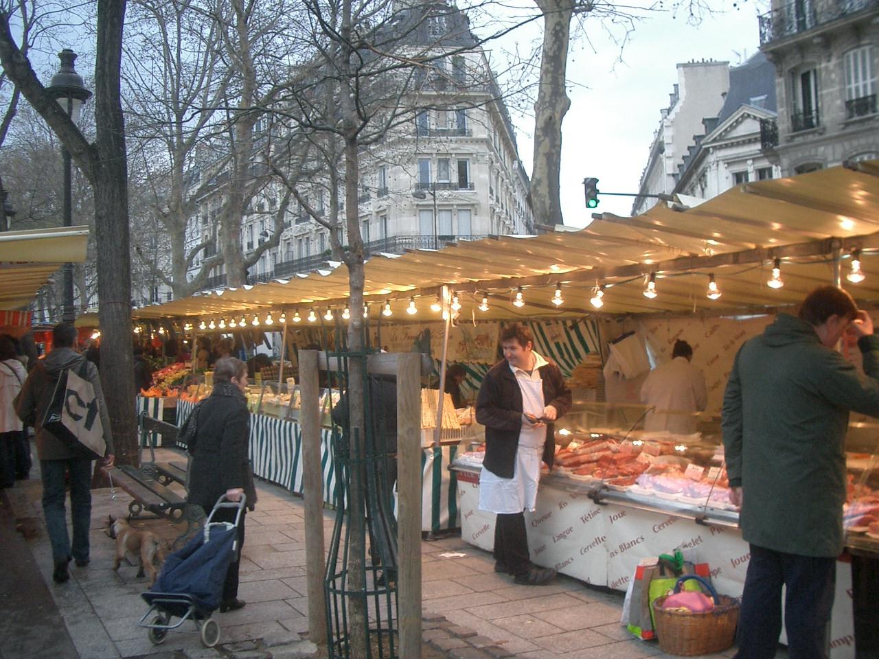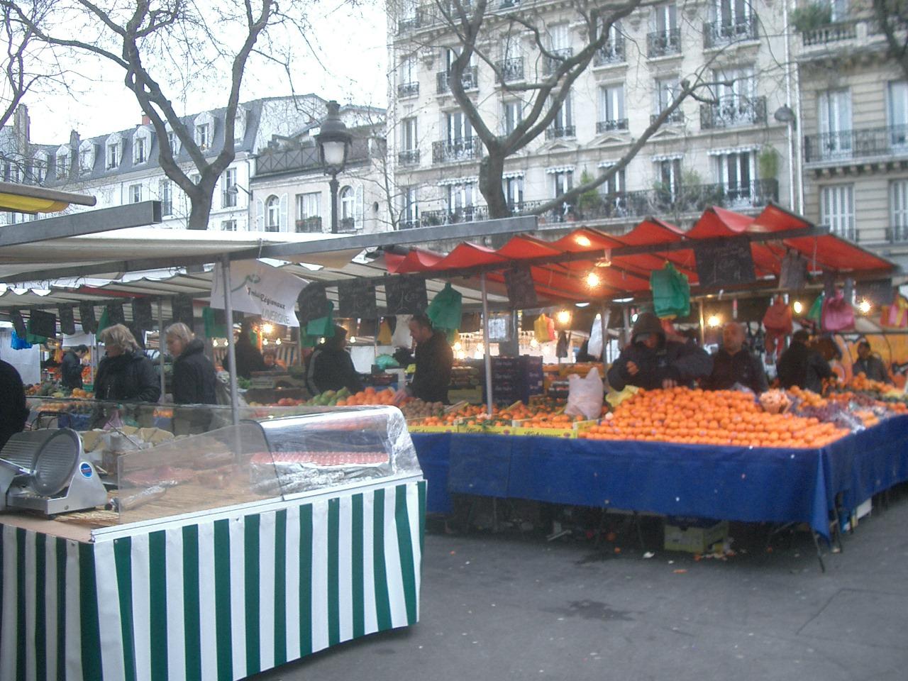 バスティーユ駅からブレゲ・サビン駅までのリシャール・レノワール通りに週に2度朝市が開かれます。(小さいのがもう一つある。)日曜日の朝市は食品が中心です。魚屋さんでは、その場で生牡蠣を出してくれます。レモン汁をかけて、すするのです。肉も野菜も、それはそれはたくさんのお店が出ています。