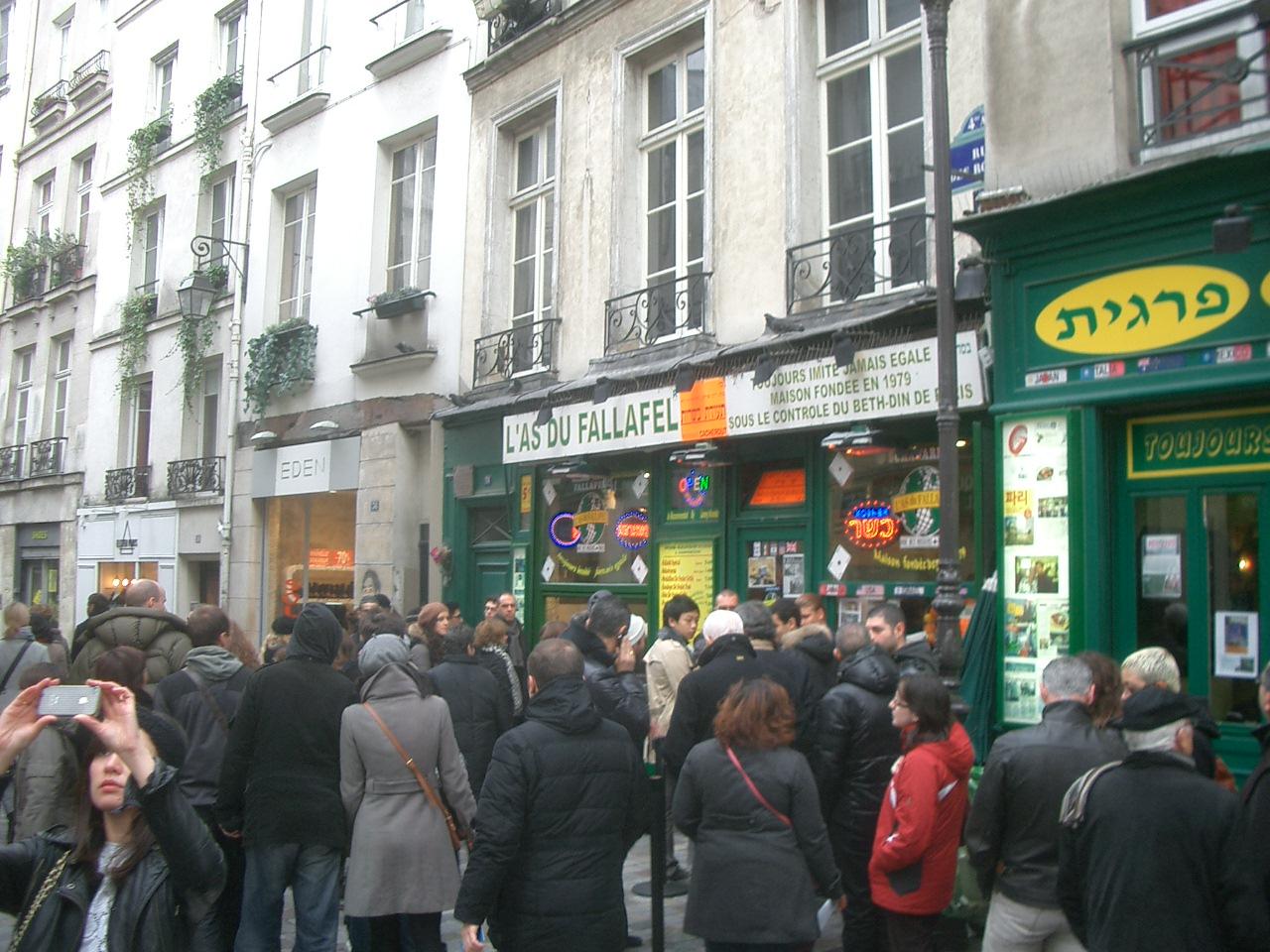 マレ地区をお散歩するなら、ユダヤ風サンドイッチのお店がランチ所となります。路上に人があふれているので場所はすぐに分かります。ユダヤ風とはどんな味かと興味深々で食べたのですが、狭いお店でおまけに満員で、そばには赤ちゃん連れもいて賑やかで、結局、どんな味だったか分からずにすんでしましました。とにかくにぎやかなお店です。店員さんも感じのよい人でした。