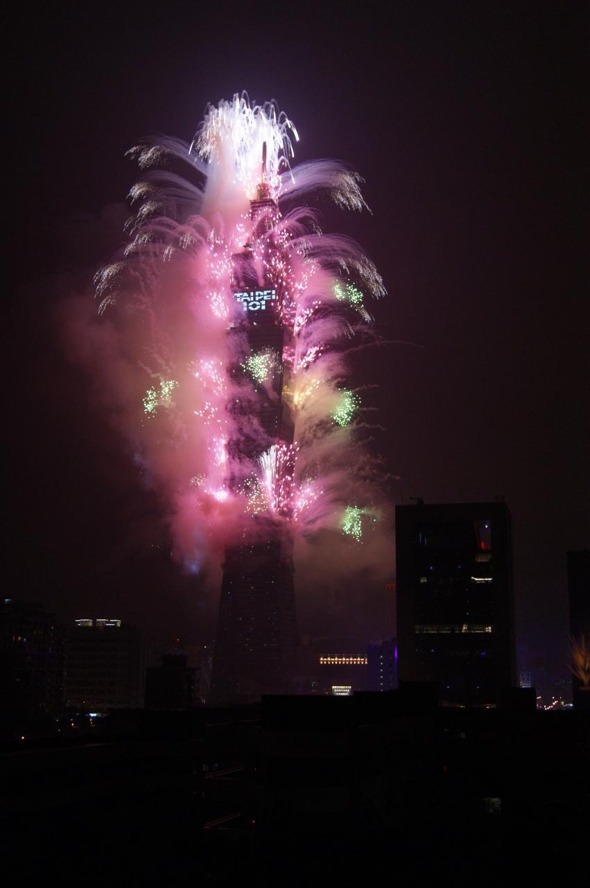 タイペイ101にまとわり付く煙が、花火の余韻を感じさせます。 -
