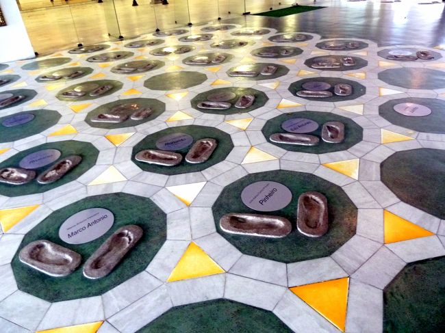化粧直しの為会場内には入れなかったが、会場の入り口にあるの床面の、2000年にマラカナンスタジアム50周年を記念して造られた、カウサーダ・ダ・ファマと呼ばれる歴代ブラジル代表の名選手達の足形の造形から、私もその名を知っている選手の足形探しを楽しんだ。