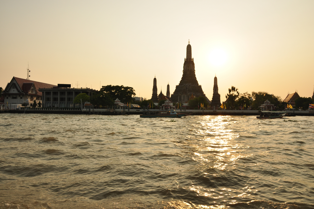 夕陽を背にしたワットアルンが見たい…と、チャオプラヤー川を挟んで向かいのター・ティアンへやって来ました。すぐそばに寝仏のワット・ポーがある波止場です。