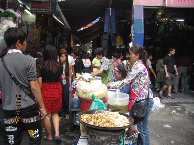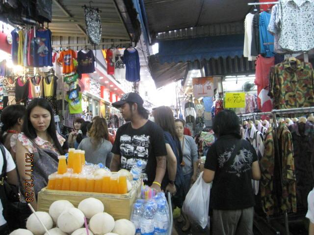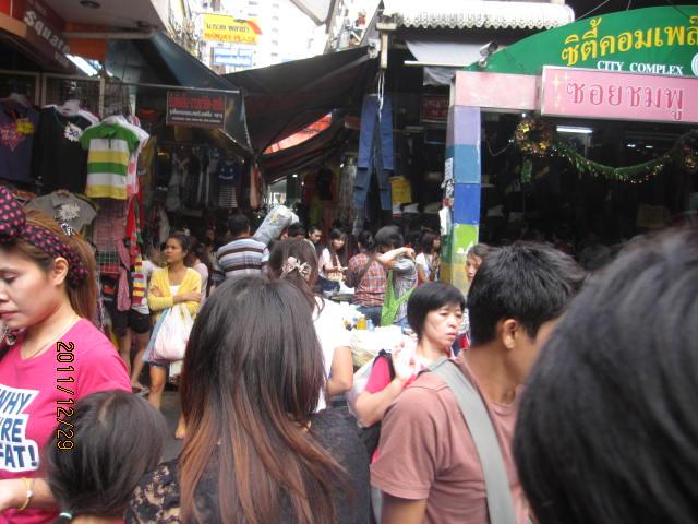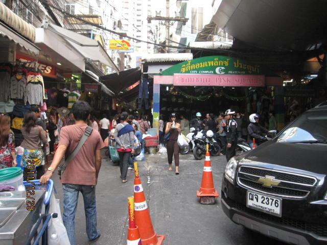 プラトウナムの橋までくると、バンコク一高い超高層ホテル「バイヨークスカイ」が目の前に見えてくる。プラトウナムの前の道路を横断すると、そこは、雑貨、衣類等の小売店が数百も集まっている巨大なマーケットがある。そのマーケットの名前は何というか知らないが、兎も角おびただしい数である。数百を越えて、千数百の単位であるかも知れない。