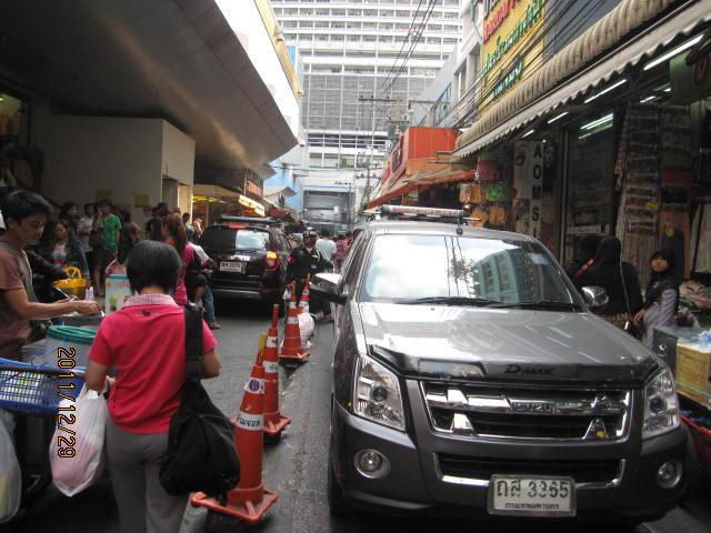その迷路のような衣料品店街を通り抜けると、又、小さな路地がバイヨークの前まで続いている。その狭い路地を大型の乗用車が道幅いっぱいに通り抜けようとする。日本では余り考えられない光景だが、タイでは、車が入れる道であれば、どこへでも入って行ってしまう。丁度そんな光景だった。