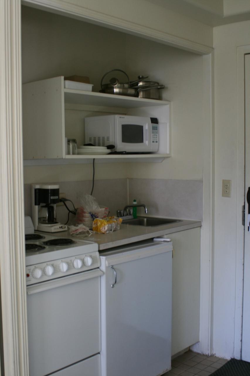 小さいですが、コーヒーメーカー、レンジ、オープン、鍋類も