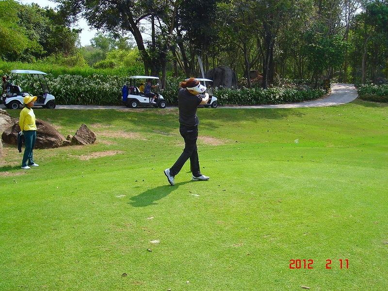 ゴルフプレイは。2/11〜2/19の9日間を楽しんだ。2/18(土)の午後、プレイを終えてから、サイアムCCでの「ホンダLPGAタイランド2012米国女子ツアートーナメント」の3日目をを観戦してきた。日本から宮里藍選手等4人の参加があったが主に藍ちゃんの追っかけをしてきた。結果として3日目は首位だったが最終結果2位だった。日本での観戦とは異なるおおらかなもので全て”マイペンライ”写真撮影はフリーだったので良い想い出が沢山撮影できた。