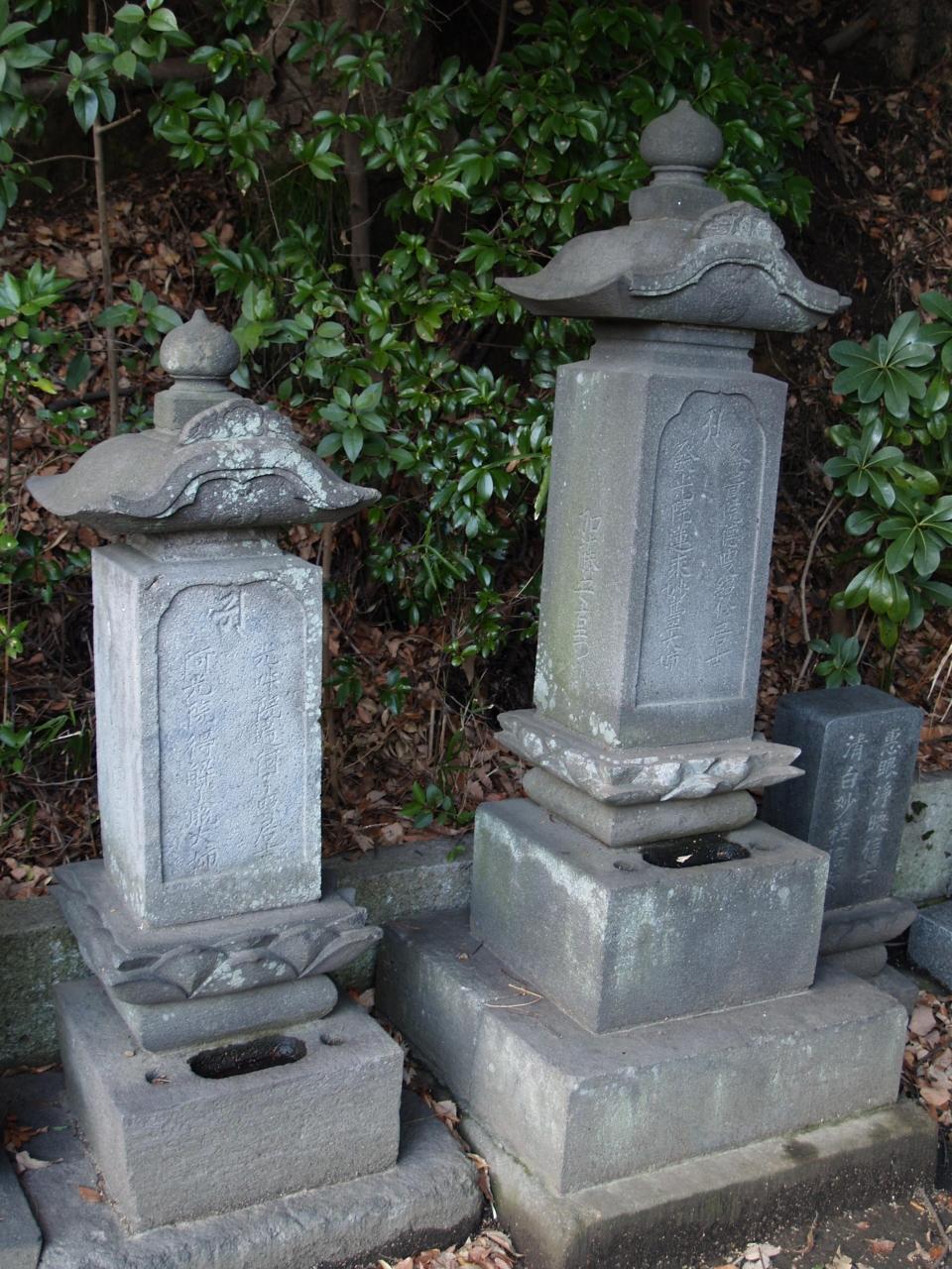 横浜市栄区笠間2に鎮座する神明社・山王社(天照皇大神宮山王神社)からの山裾には墓地が営まれ、その北の端には地元の人が御前さまと呼ぶ山岳信仰の石碑が並ぶ崖がある。笠間十字路近くのかっぱ寿司からの小路を入ったところに石段があり、山頂に鳥居がある。御前さまの裏の崖はデニーズの横にあたる。御前さまの下には墓地があり、前のお宅の古くからある裏山の墓地であろう。また、神明社・山王社(天照皇大神宮山王神社)側にも石井家の立派な墓地やその奥には加藤家の墓地と石井宮司家の墓地があるが、今では切通しとなって山の尾根が切り離されている。