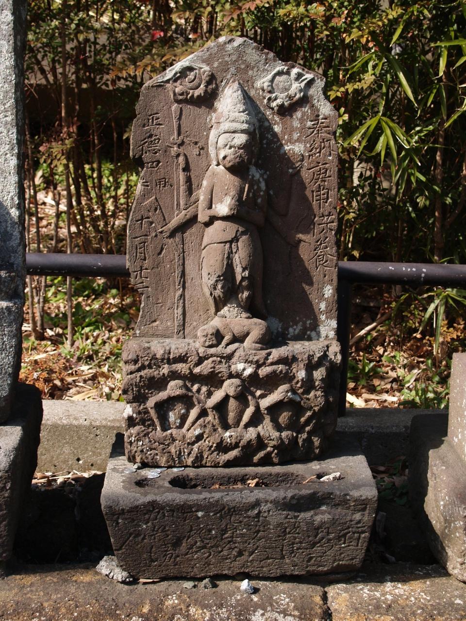 横浜市栄区笠間2には庚申塚がある。石仏1体と4基の庚申塔であるが、延宝8年(1680年)から万延元年(1860年)までの180年間に亘って建立されてきたことがわかる。江戸中後期になると江戸庶民にも大山詣でが盛んになり、物見遊山で江ノ島や鎌倉、金沢八景などに寄った。そうして江戸時代になると笠間は宿場町となり、笠間仲宿とそれと平行した笠間裏宿が設けられた。その宿場町の出入口に庚申塔が建てられた。庚申塚はいわば上方見附に相当しようか。それなら新橋の延命地蔵あたりが江戸見附に相当しよう。