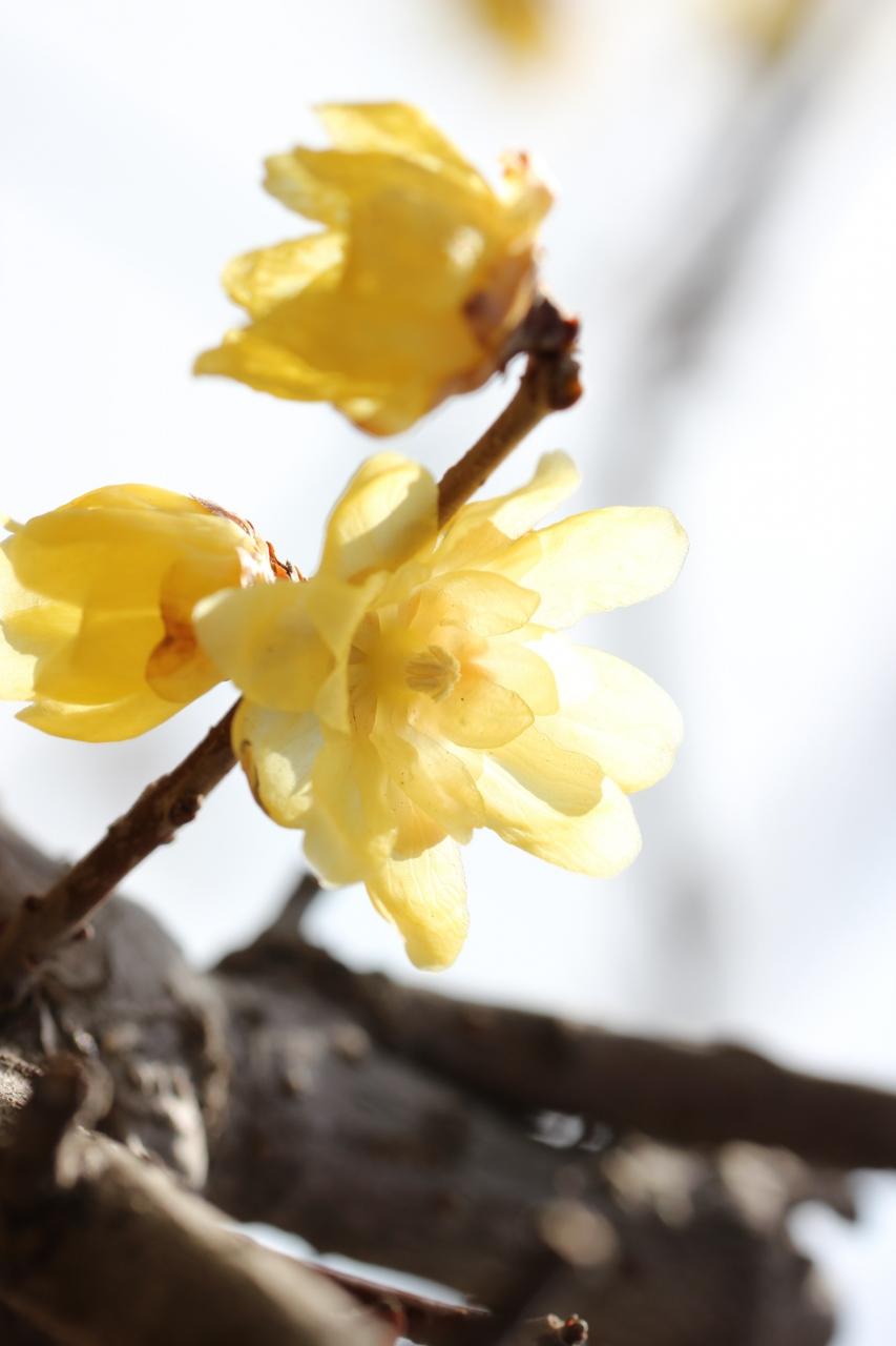 また、ロウバイやフクジュソウを接写しようと思ってマクロレンズも持参しましたが、マクロレンズは接写ばかりが能でなく、接写することなく普通のレンズのように使うと、黄色い雨あられと飛び散るようだったロウバイ景色が意外に撮りやすいことが判明しました(ただし私のマクロレンズは焦点距離60mmのものです)。
