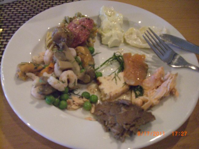 今日の夕食は北欧のバイキング、スモーガス料理。前菜からメイン、デザートまで各種好きに食べる形式は、日本のそれと一緒かな。