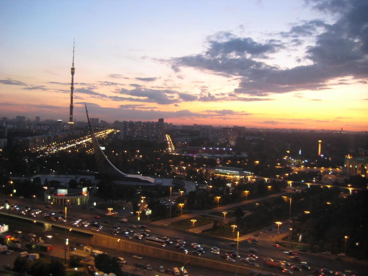 モスクワの町がSFチックな夕暮れ。 -