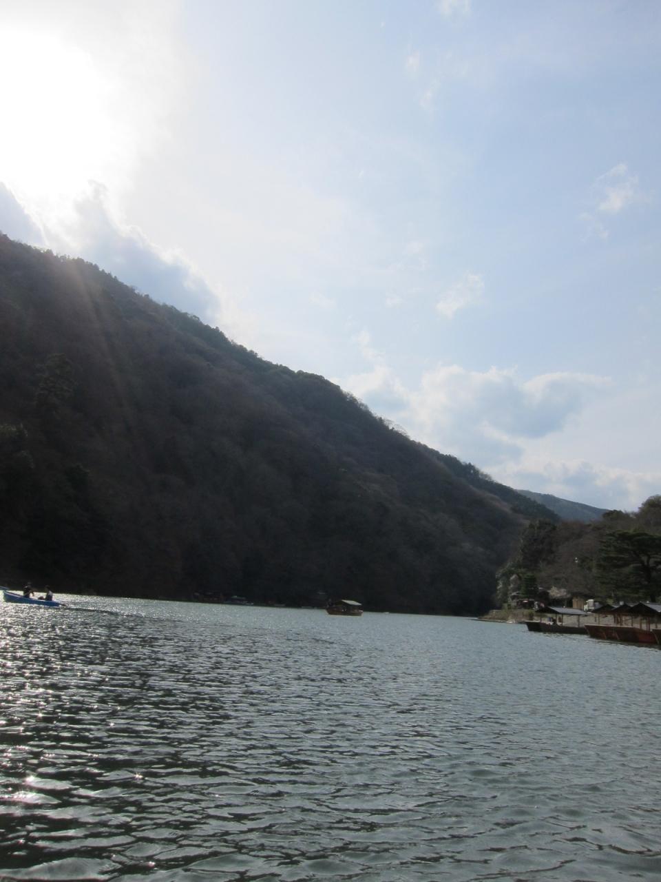 嵐山を歩いていると、川の上をボートがあるではないですか!!