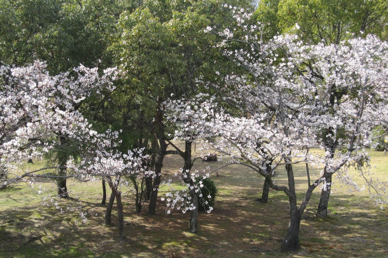2012春、三好池の五分咲きの桜(1/4):ソメイヨシノ、三好池神社、紫木蓮、スズラン