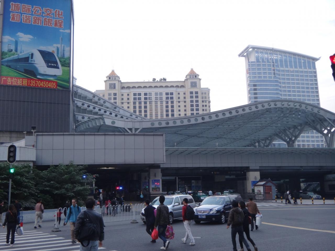 南京南站とか杭州南站とかみたいに、郊外にポツンとあるのかと思ったら、けっこ、街中ですね。マクドやスタバも駅前に…まだ、開いてませんね。