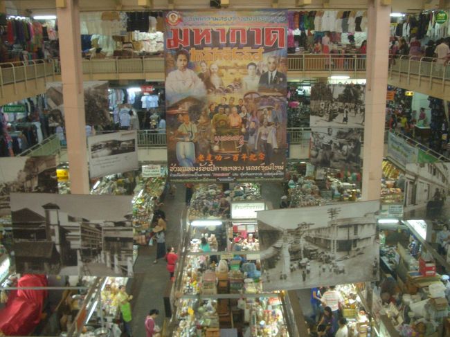歩道橋周辺は衣料関係、そこを向けるとワローロット市場の中心に。