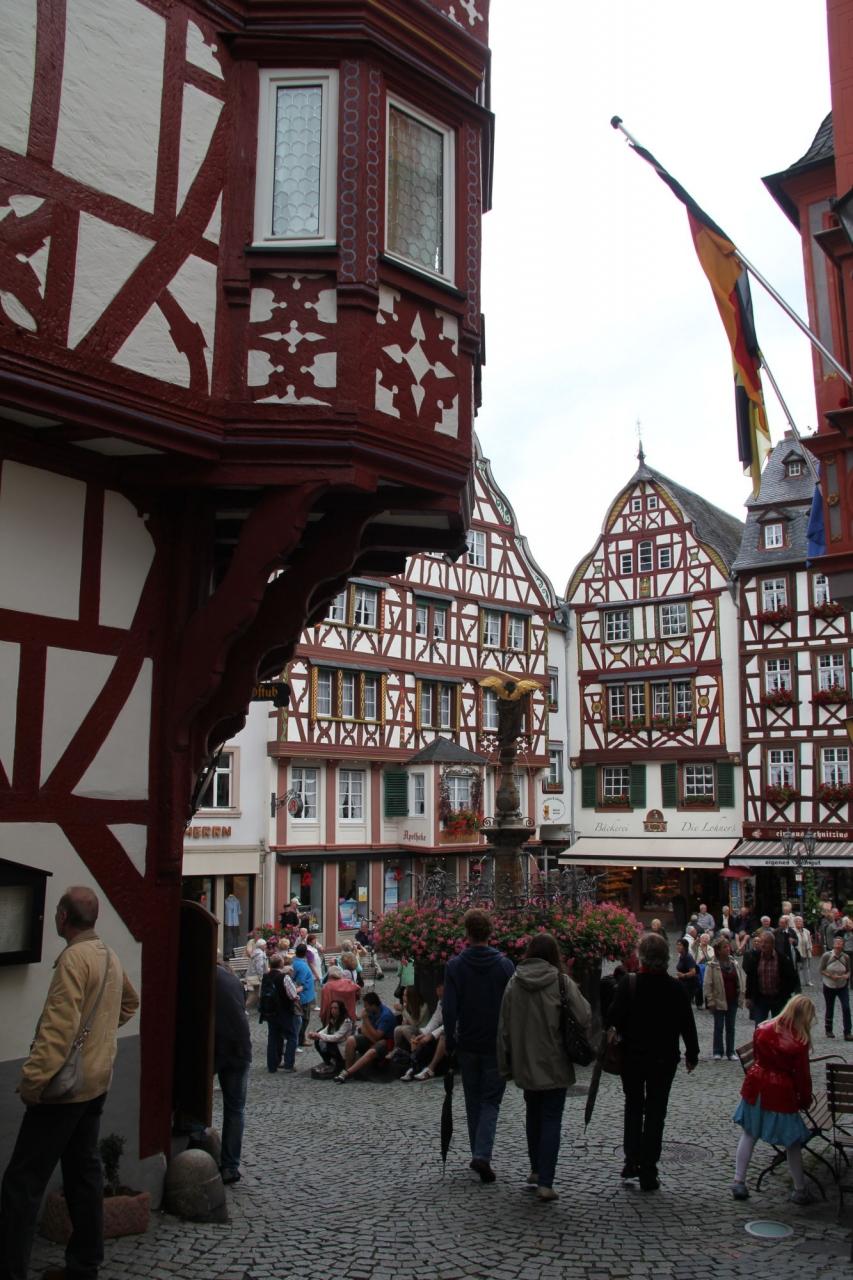 ベルンカステルの中心広場。木組みの家がたくさん残ってます。観光客もいっぱい。