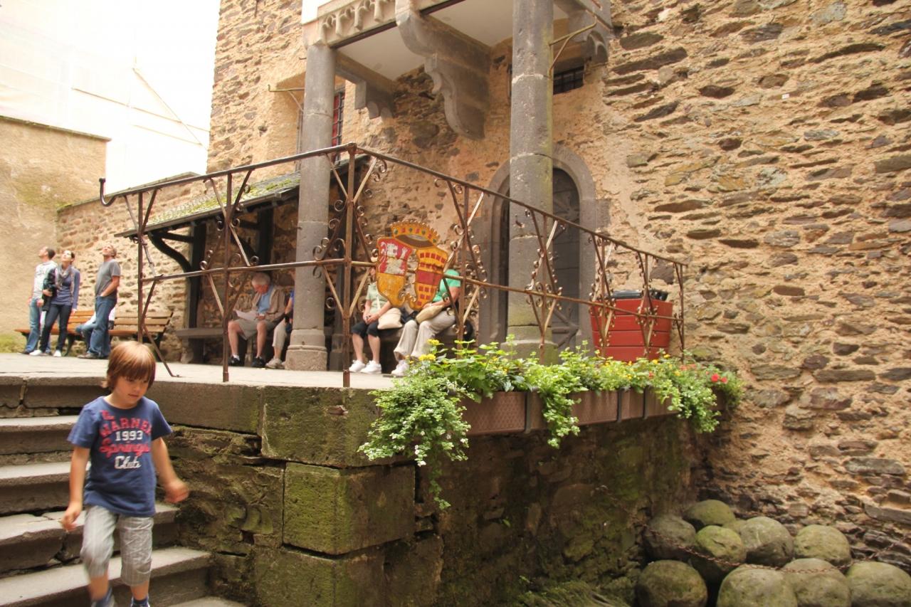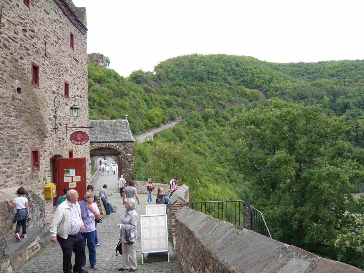 駐車場からエルツ城までは徒歩かミニバス(有料)でアプローチ。途中に城を見下ろすスポットがある為、歩いていきます。