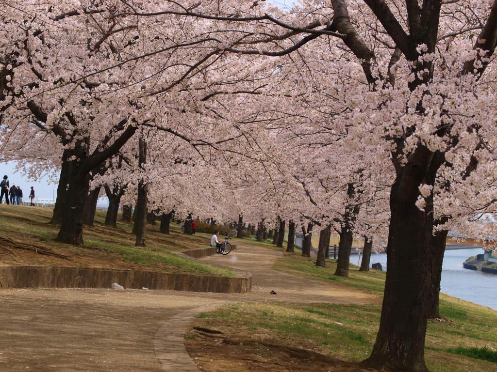 平日なので 満開の荒川土手も