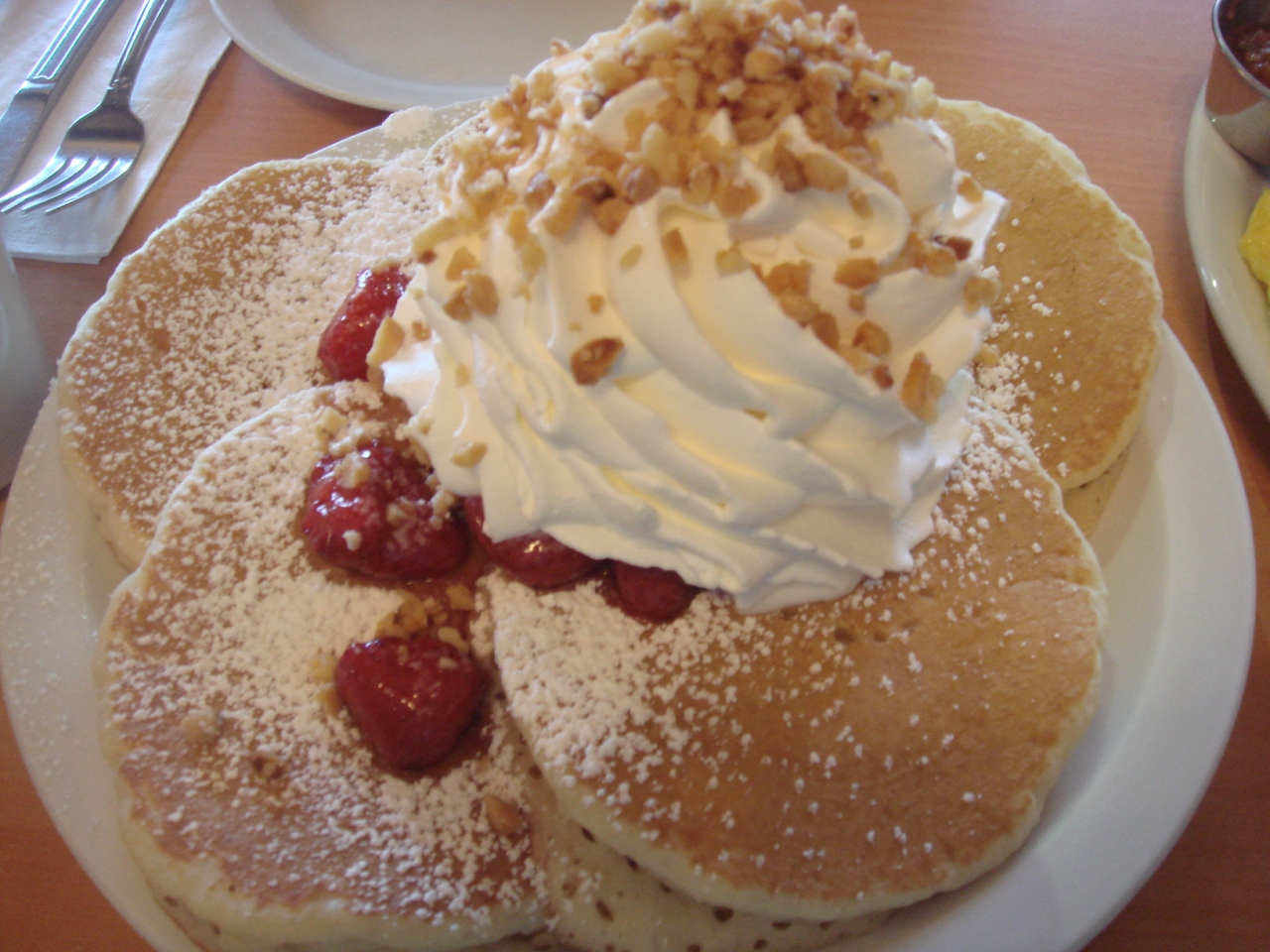 定番のストロベリー・ホイップクリーム・ナッツ・パンケーキ