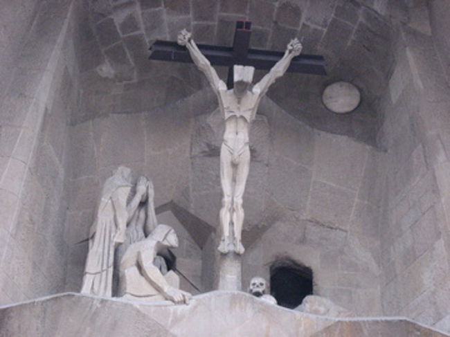 生誕のファザードと真逆になる西面のこちらが受難のファザード。キリストの磔刑場面を描いているそうです。