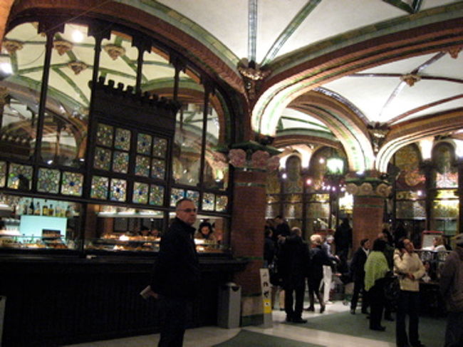 クアトラ・ガッツ(4匹の猫)という、ガウディもピカソも通ったというレストランにやってきました。予約してなかったのですが、なんとかすべりこむ事ができました!中が吹き抜けになっています。