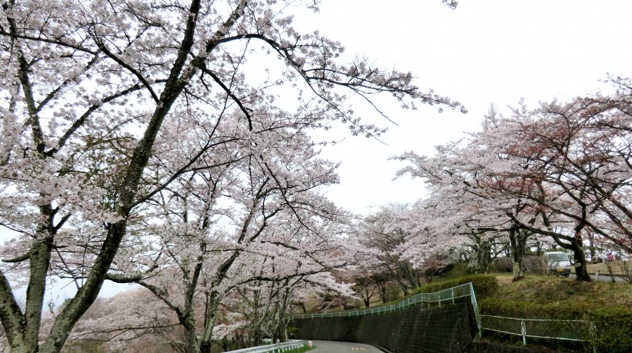美の山観光道路にそって、満開の桜並木が続いてました。