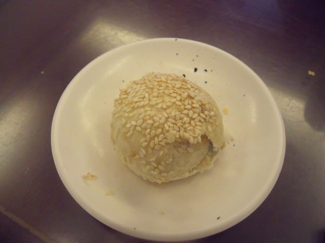 マックの朝食後、おじさんが屋台で美味しそうなものを焼いていたので購入。お好み焼きみたいなものでした。